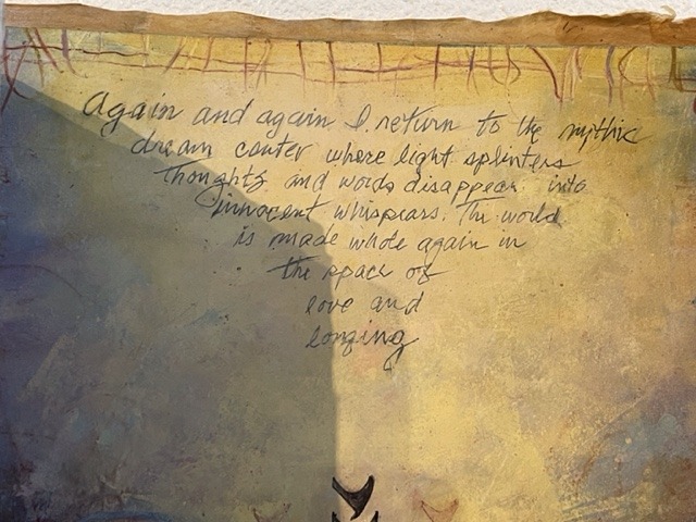 Barancik’s leather-bound book of 34 mixed media collages was a “collection of exquisite pieces of artwork. . . collage, stunning drawings and woodblock prints featuring Barancik’s signature mark-making of striking black and white tones.” – Robin Perry Dana.