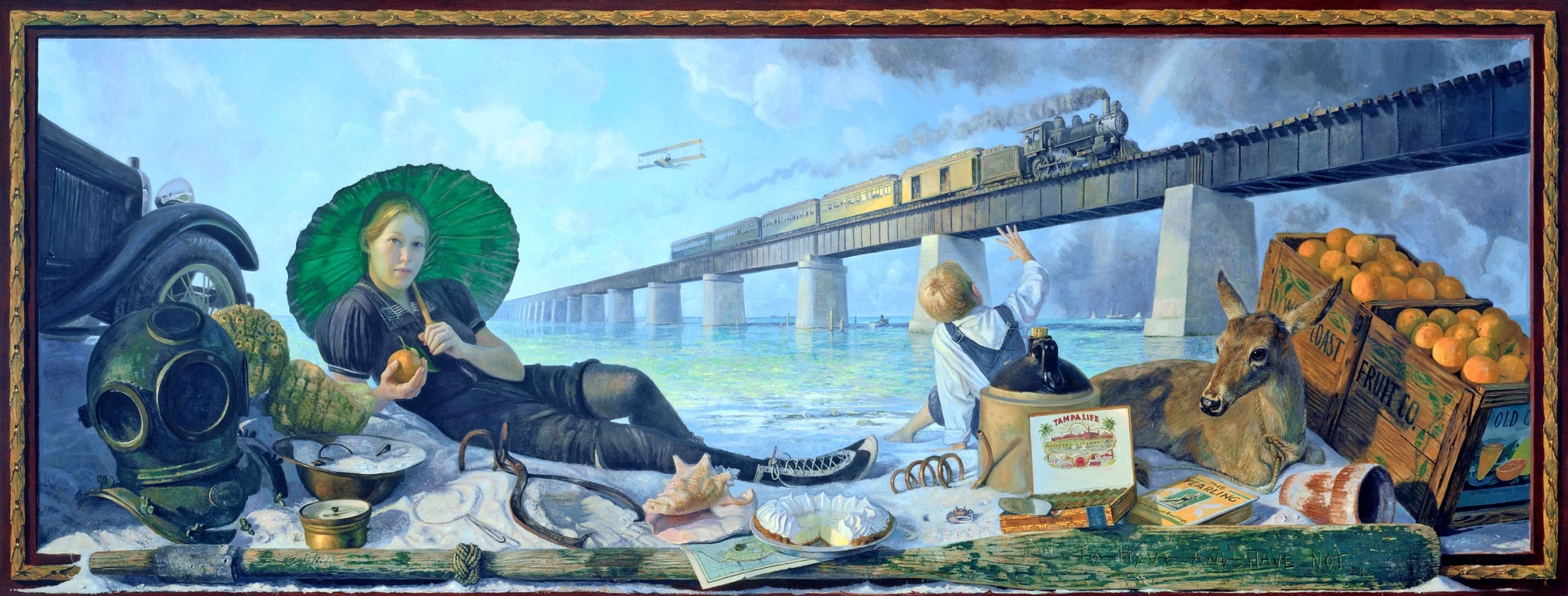 Included in To Have and Have Not, one of ten large-scale works at the Florida House of Representatives, are many historical references including the Overseas Railway in the Keys, the orange industry, sponge diving in Tarpon Springs, cigar production in Ybor City (Tampa) and other events in Florida history.