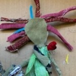 Using extra material I cut and hot glued pieces of material together to suggest clothing. I didn’t attach it directly to the doll because I want to be able to change it later. I will eventually use clay for the facial features so they can me manipulated and animated using a stop motion app.
