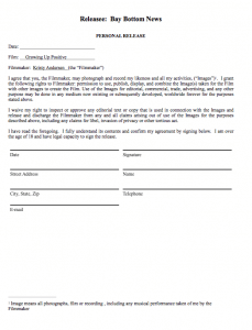 When you film an interview, you should get a release. I jokingly tell people that a release gives me all the rights and they get none – and this is the truth. Remember that eventually you will want to distribute your work, either on your own or by selling it to someone else. You have to be able to offer your distributor a film that is free and clear. If not then the distributor will not be willing to take a chance on the distribution.