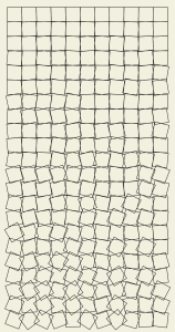 And here is that same pseudocode translated into functional JavaScript. This sketch generates something close to Georg Nees’ work Schotter. Nees, a pioneer of generative art who exhibited some of the world’s first generative graphics at the exhibit Computer Grafik, in 1965 [1].