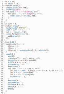 With but a few small edits, we can yield dramatic change of the compiled visual output. Now imagine we start to apply outside forces. For instance, what might it look like to take data from the sun, wind or ocean waves? We could stream this data into the code to affect the drawing.