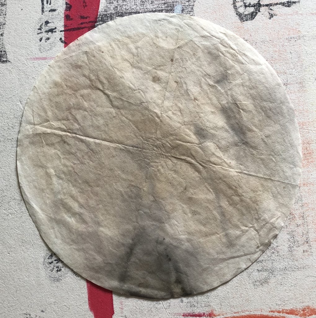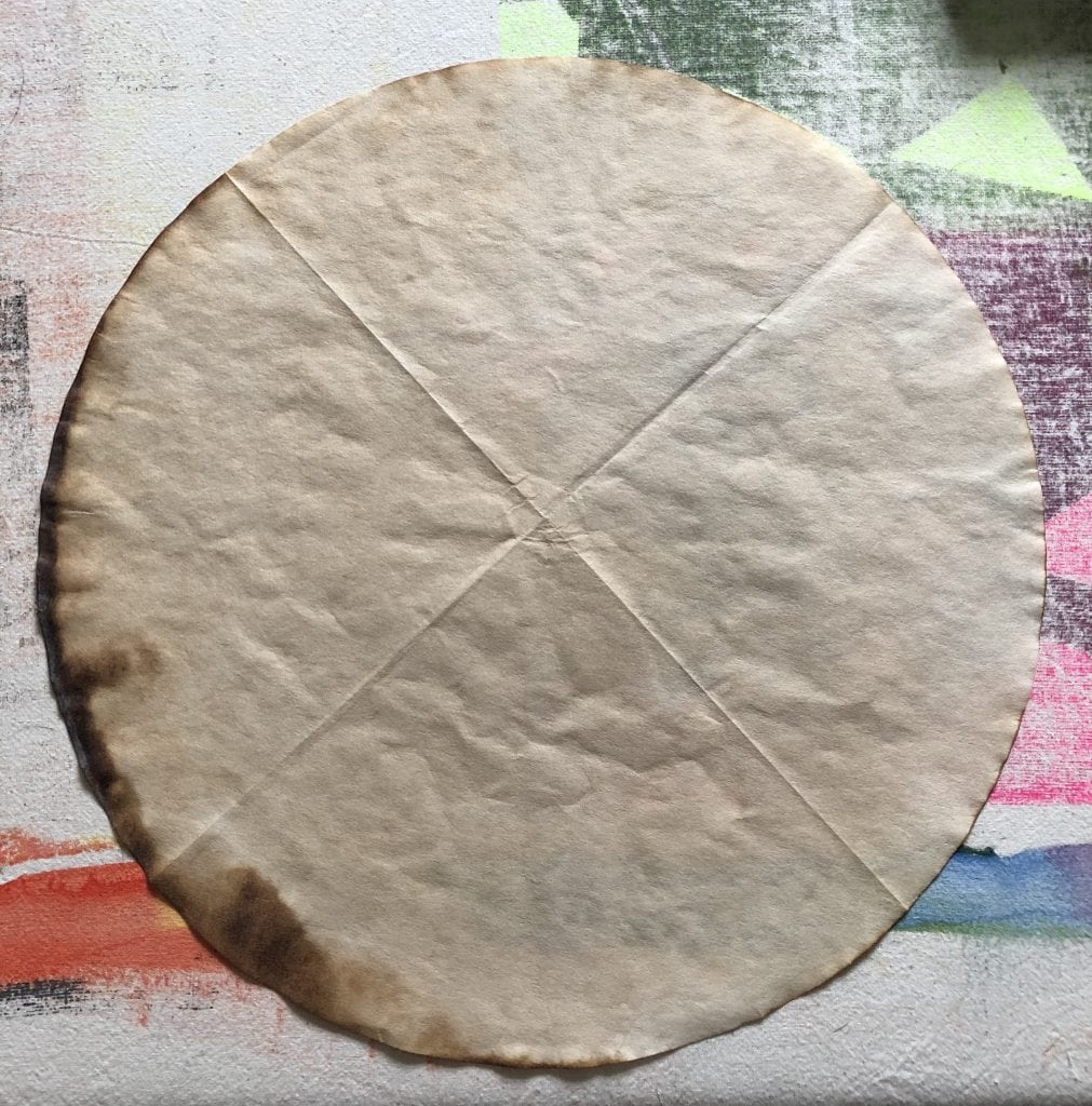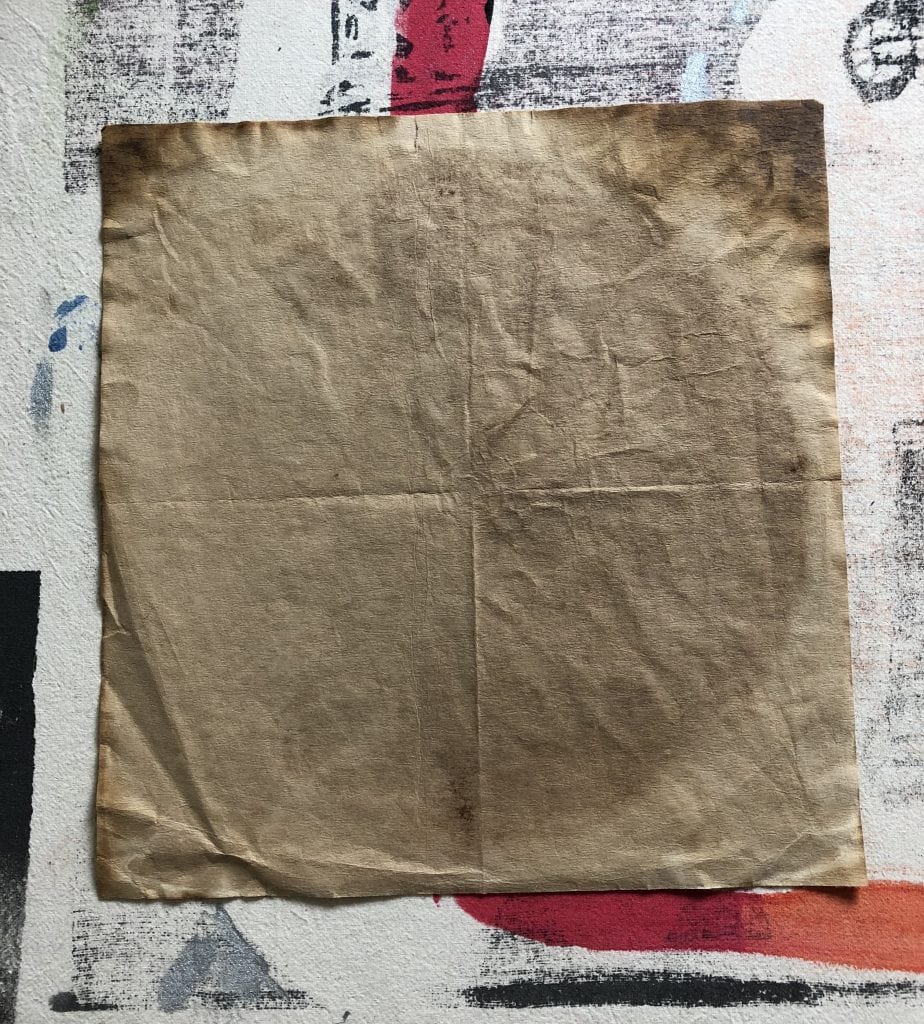 I am interested in experimenting and adding other materials under the gamut of fiber/ textiles that aren’t considered a alert of that medium. These materials have some do the similar qualities. One such material is Chemex Coffee Filters. I use them on a daily basis to make my coffee and have been collecting used filters for a while now. They are either circular or rectangular, thin and off white or light sand in color. They are very porous, they absorb easily and they stain easy. Since I am using used coffee filters, I like the stains that are sustained from their primary function.