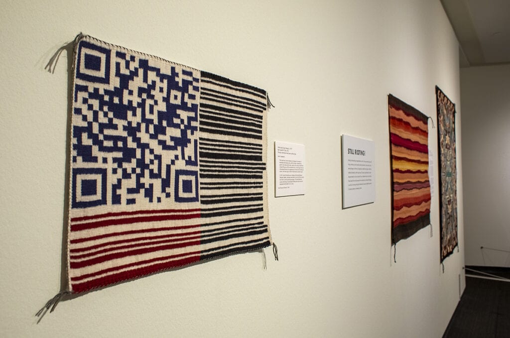 If Color Riot! can be described with a Venn diagram, it would show many overlapping circles — circles of anthropology, design language, color theory, artisanship, art, animal husbandry, tribal traditions, weaving industry, fashion/styles, gender roles, trade routes, colonialism, government oppression, internment camps, the Navajo people, self identity, symbolism, and the American West landscape.