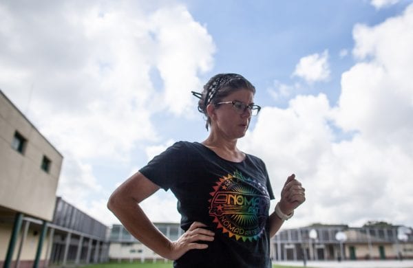 Carrie Boucher delegates clean-up responsibilities during the Justice Studio’s mural creation at the Pinellas County Juvenile Detention Center. Photo by Todd Bates.