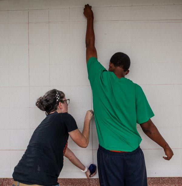 Carrie Boucher and Pinellas County Juvenile Detention Center inmates plot out a mural design. Photo by Todd Bates.