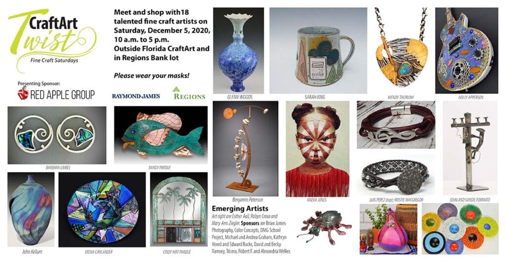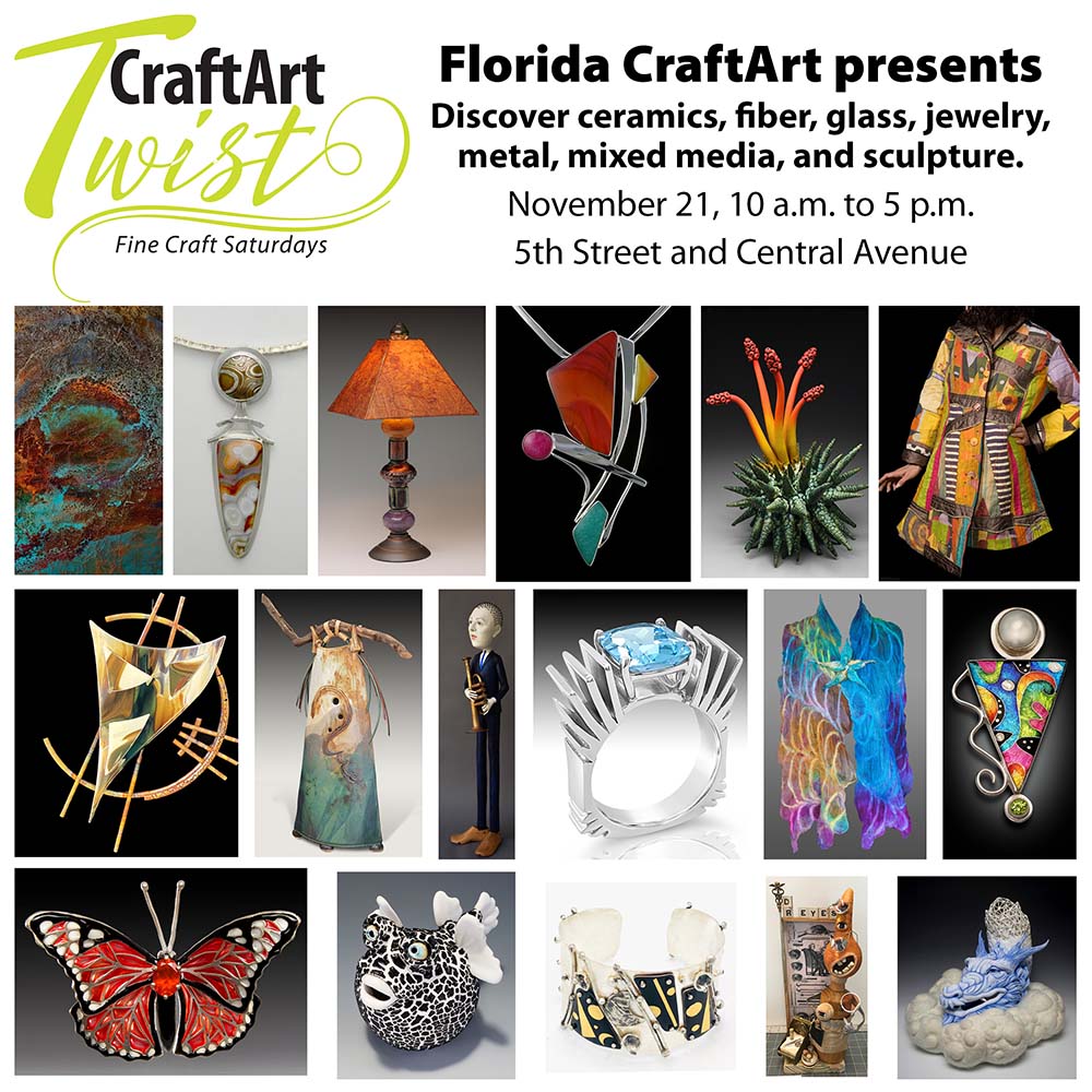 CraftArt with a Twist will be hosted by Florida CraftArt Gallery at 501 Central Avenue in downtown St. Petersburg on two separate Saturdays – one preceding and one following the Thanksgiving holiday – to kick off the holiday shopping season.