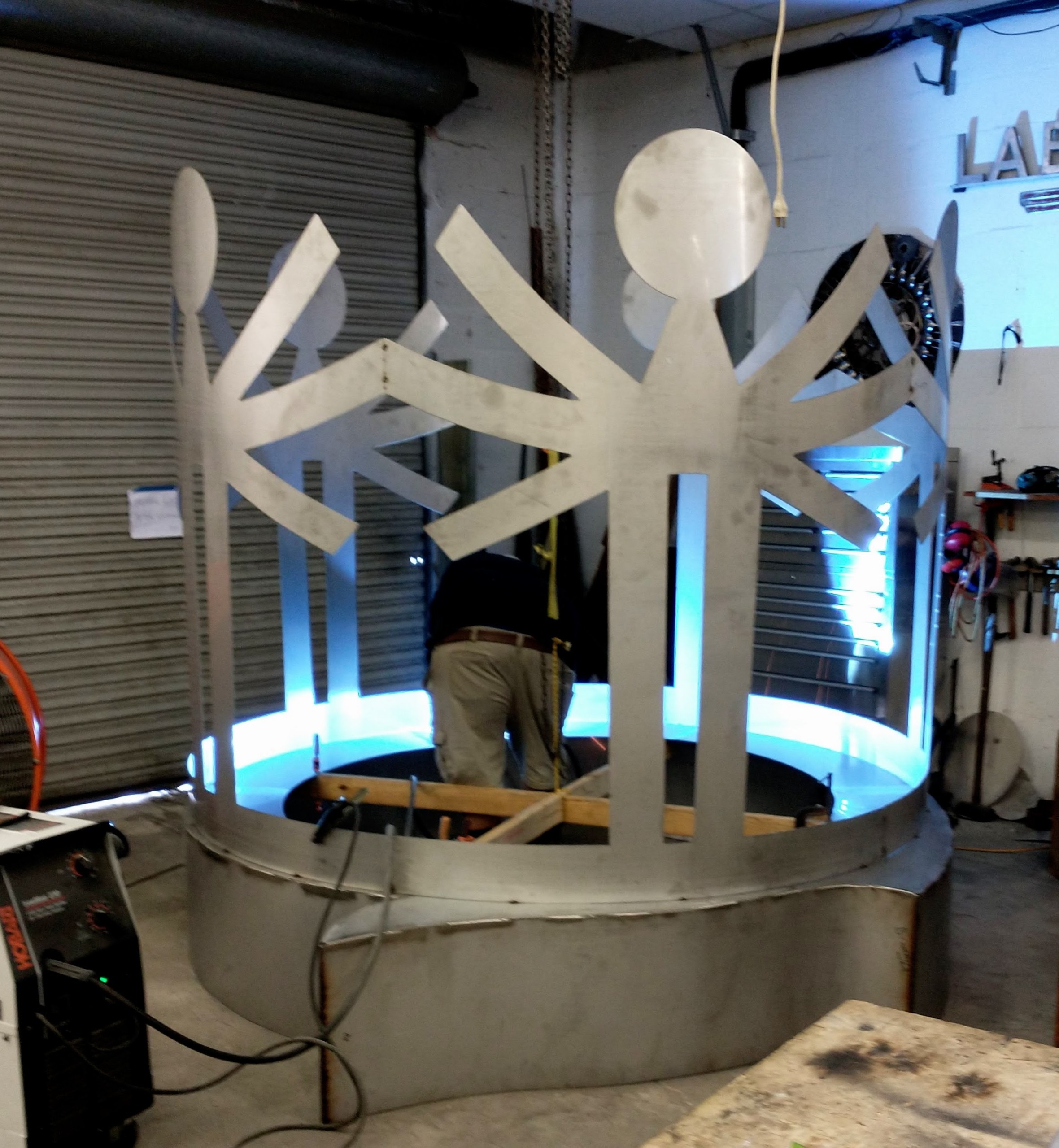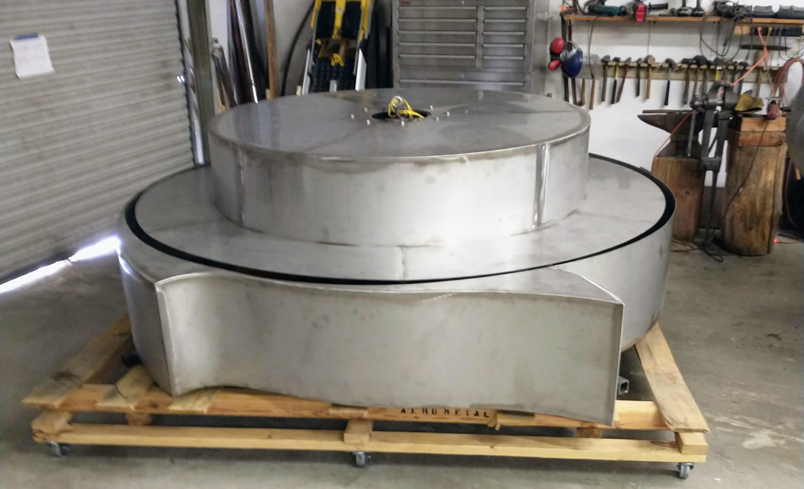 Slowly the sculpture came together with the help of a high-tech programmable metal roller, TIG and MIG welders, muscle power, and weeks of diligent work and problem solving.