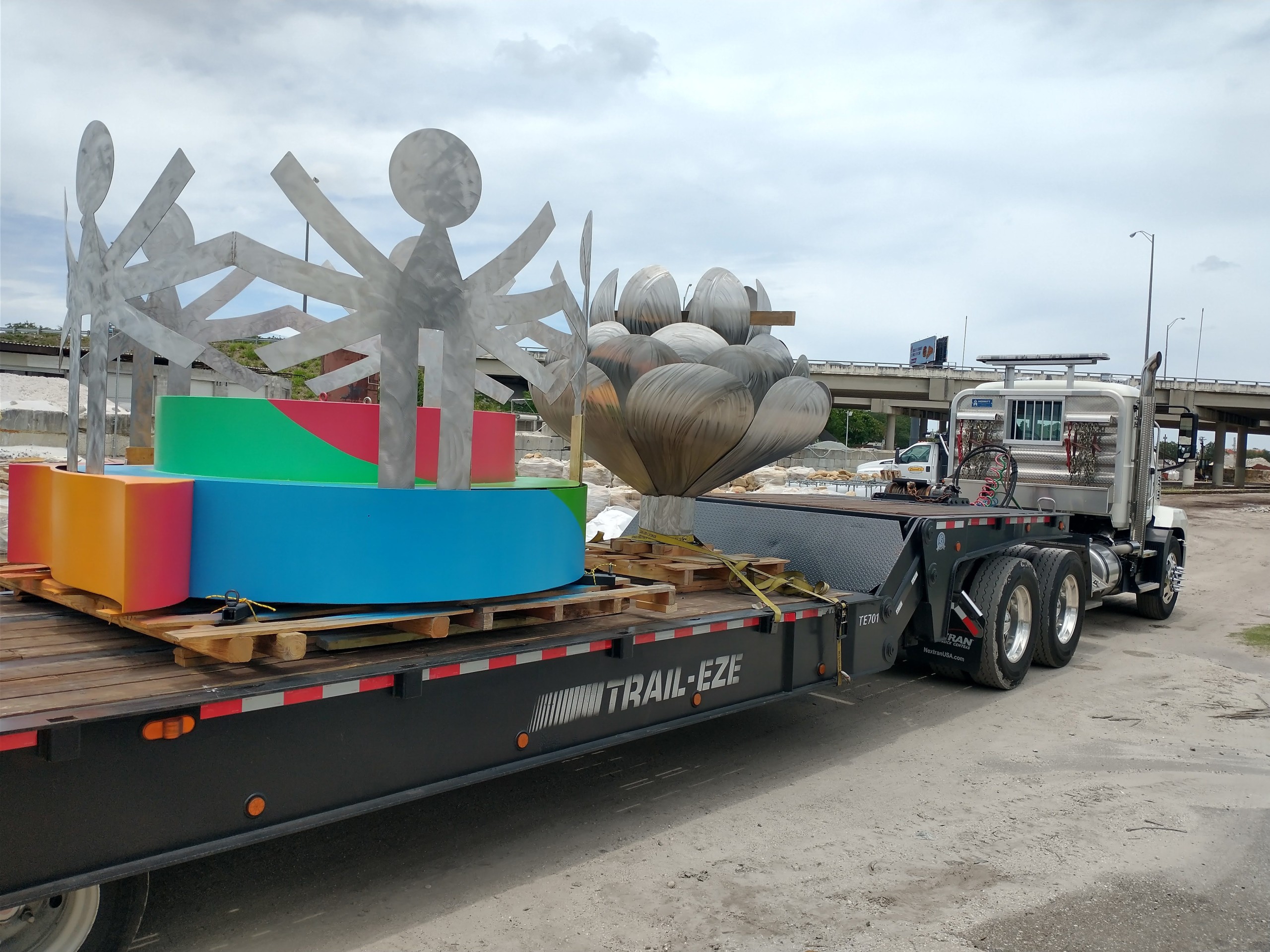 The design had to be analyzed and certified by an engineer to obtain permitting while on the various properties. And the rather large eight-foot diameter base had to be painted to complete the design.