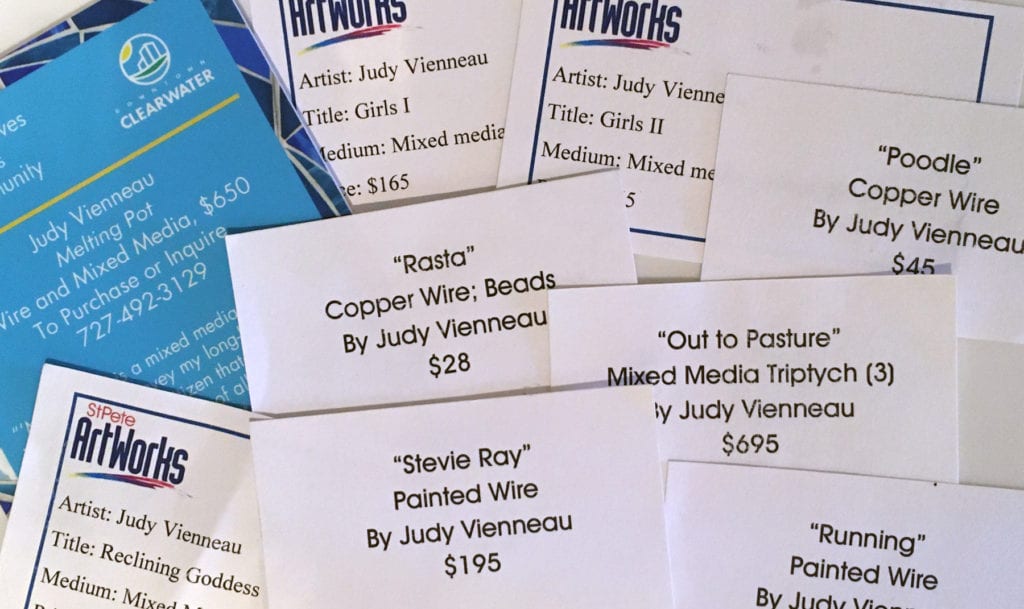 I find many artists do not give any thought to a title until the piece is completed, then struggle to come up with something. It seems this applies mostly to artists who create abstract works that are more intuitive than planned. On the other hand, in my own work, I have a concept in mind most of the time, and sometimes come up with the title first. I like to keep my titles short – one or two words – and theoretical. If the title is too long, it won’t fit on the tag for one thing, plus the viewer may not bother to read it.