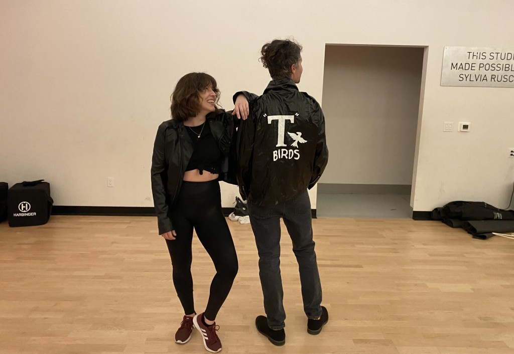 Everyone started the dance routine with a jacket. Sandy flung her jacket off first — I didn’t bring a jacket, so Johnson graciously lent me one of her extras — tossing it aside after we made a grand entrance to get Danny’s attention. After procuring his focus with the notorious one-liner, “tell me about it, stud,” Danny lost control, whipping his jacket around, throwing his hips side to side, and ending in a heated launch of his leather jacket.