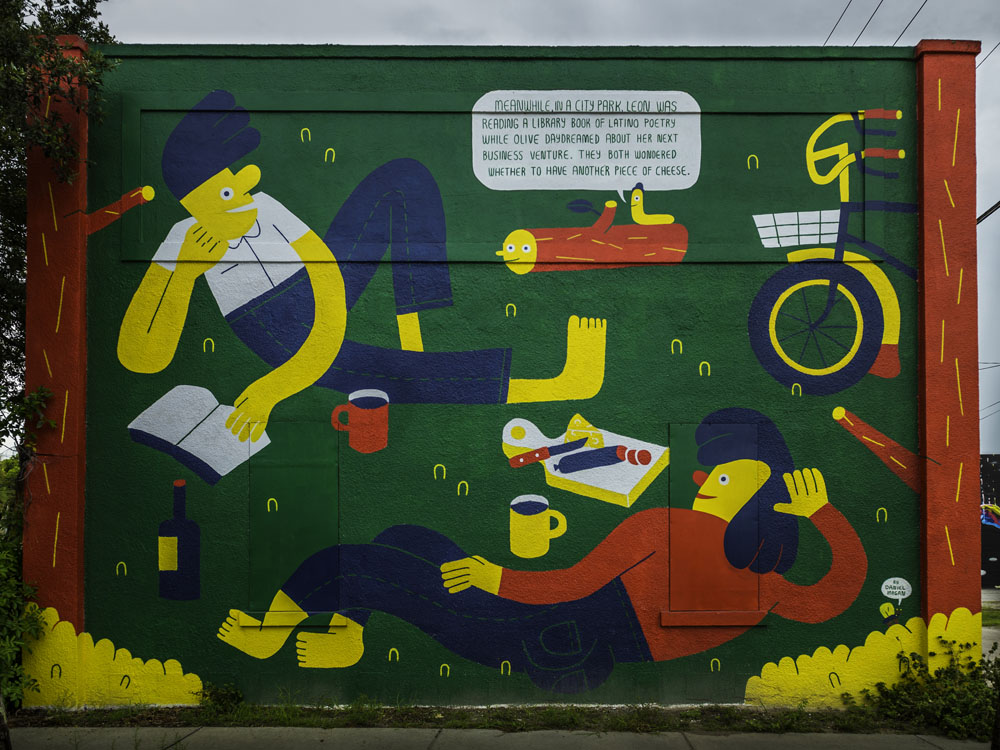 As the pages of my sketchbook filled up with doodles of fantastical fruits and flowers, I also started writing short whimsical notes about the people I was seeing at the garden. A narrative component has always been a significant element of my art, so notes and mini stories are a pretty common part of my process.