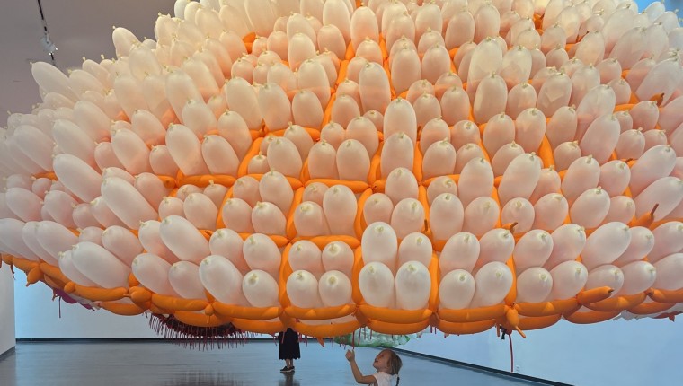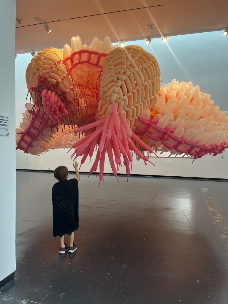 They saw balloons and thought ‘celebration’ so it was quite difficult to explain why they shouldn’t touch the work. When I reminded them that this was an art display so they should use their eyes, they decided to get on all fours and climb underneath the sculptures instead. We moved on from that room quickly.