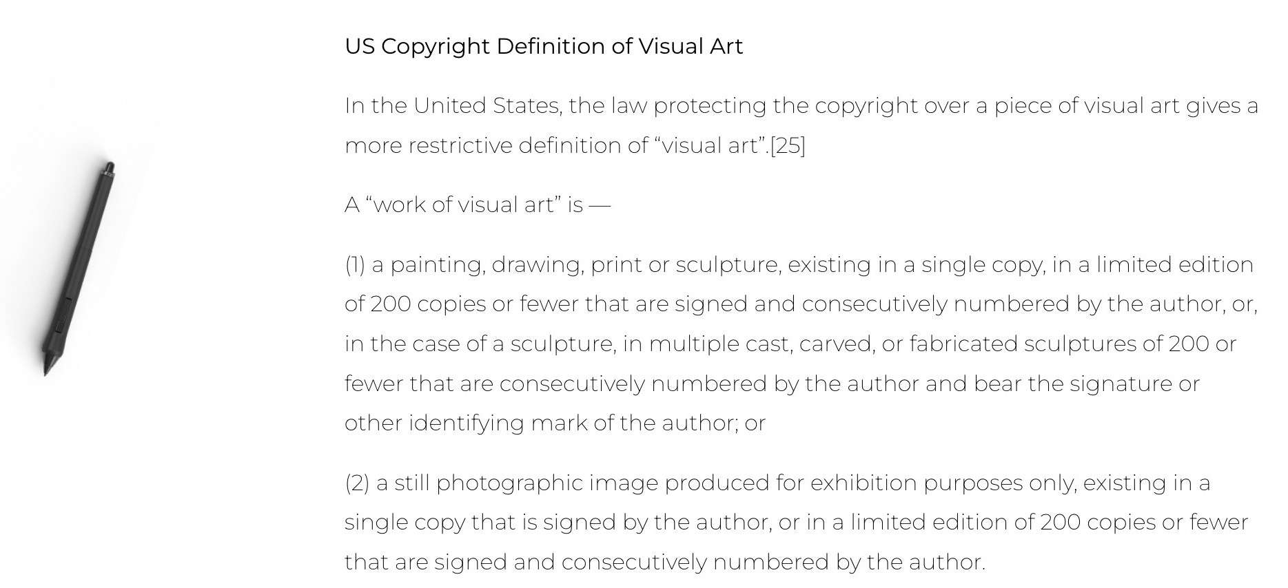 By dedicating an entire page of your website to the US Copyright definition of visual art, it seems you’re emphasizing the legal side of the art world. Is part of your mission to educate artists in the business of art?