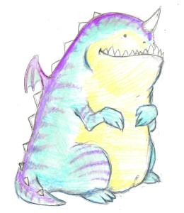 Why?? Because this little “doodle” (his words, not mine), was magic. It felt like home. Like the most beautiful bits and pieces of our family and lives together- wrapped up in this monster that seemed to follow us wherever we went. The creature’s gorgeous translucent, but much too small wings, embodied a marvelous struggle to get off the ground that has a near constant presence in our lives. The soft hues of blues and purples were warm and inviting, those tones just gave a feeling of welcoming and love. Yet the singular pointed horn that adorned the beast’s adorable head felt like the necessary warning for our families, friends and society in general. Some were well-intended; others were simply ignorant and nasty. So that wide, snaggle toothed grin across the little doodle’s face seemed to define our reserved defensiveness and at the same time our eagerness and joy to want to let people in for the children.