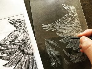 While i’m in the process of wrapping up the carving portion of large scale wood blocks, i’ve been working on a separate series of small format portraits of threatened and endangered species of Florida. I’m producing these via the dry-point etching on plexi-glass method.Typically I use the intaglio process for images that require more detail but I wanted to try a new method, especially a more economical method that doesn’t require dips in ferric acid. This is the first time i’ve used this method so I had to do plenty of research and experiment with the process. Needless to say, it’s been a refreshing change of pace and i’m looking forward to pulling proofs of what I have etched so far. Below are images that illustrate my process, minus pulling the print.