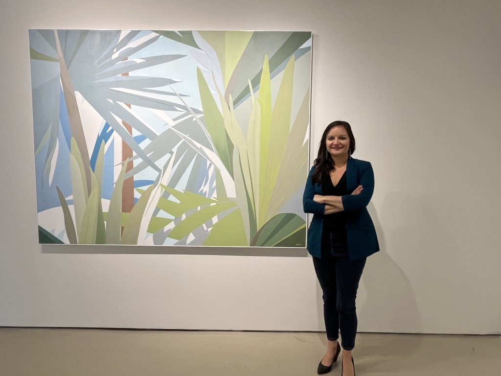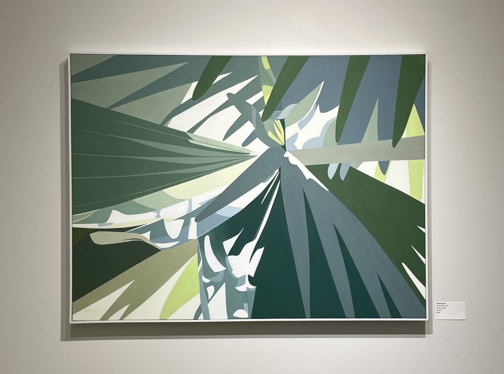 When I asked her about her style, she said that she has been focused on palm trees for the past 3 to 4 years. What started as painting from a night-time reference photo where she admired and reconstructed the patterns and forms, developed into a style she calls “Abstract Precisionism.”