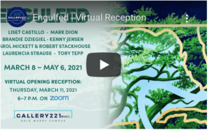 On March 11, 2021, Gallery Director Amanda Poss moderated a panel discussion with Brandie Dziegiel, Kenny Jensen, Carol Mickett & Robert Stackhouse, and Sarah Howard for the virtual reception of “Engulfed” (on view from March 8–May 6, 2021).