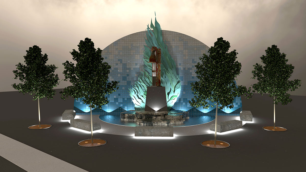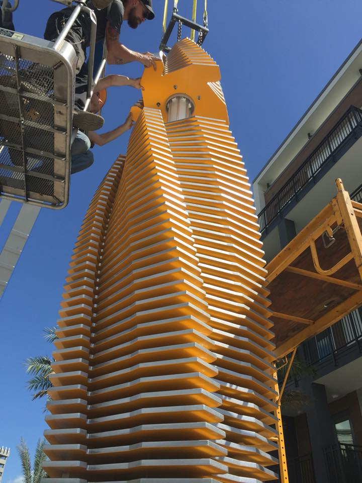 Next up for the studio is “RISE” – a monument in the Warehouse Arts District that will serve as a symbol of America’s resiliency and will be dedicated to 9/11 community heroes, first responders, and the events that happened that day. This multifaceted piece will feature at its center a large piece of steel recovered directly from the World Trade Center site. Behind it sits a 25′ tall copper phoenix wing. Fabrication is underway and we look forward to bringing this project to life! Visit https://risestpete.org/ for more information about the project and how you can help.