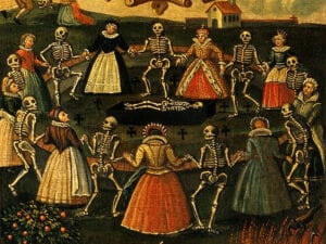 The original Everyman rose to fame shortly after The Black Death massacred Afro-Eurasia’s populations by close to 50%. From 1346-1353, over 200 million people died. In Sarah Durn’s “How Medieval People Tried to Dance the Plague Away,” she recounts how people who lived through this horror started doing some funny things, like breaking out in erratic, “epileptic” dancing at all hours. Others turned to hyper-religious repentance, even self-flagellation. What will be our solace?