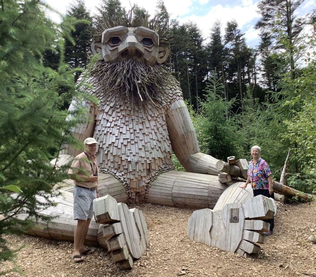 Our Danish friend, an artist and retired art teacher, Helle Freja Hansen accompanied us on many of our Troll quests. We thank her for the photo of us with a Troll near her home town of Holstebro.