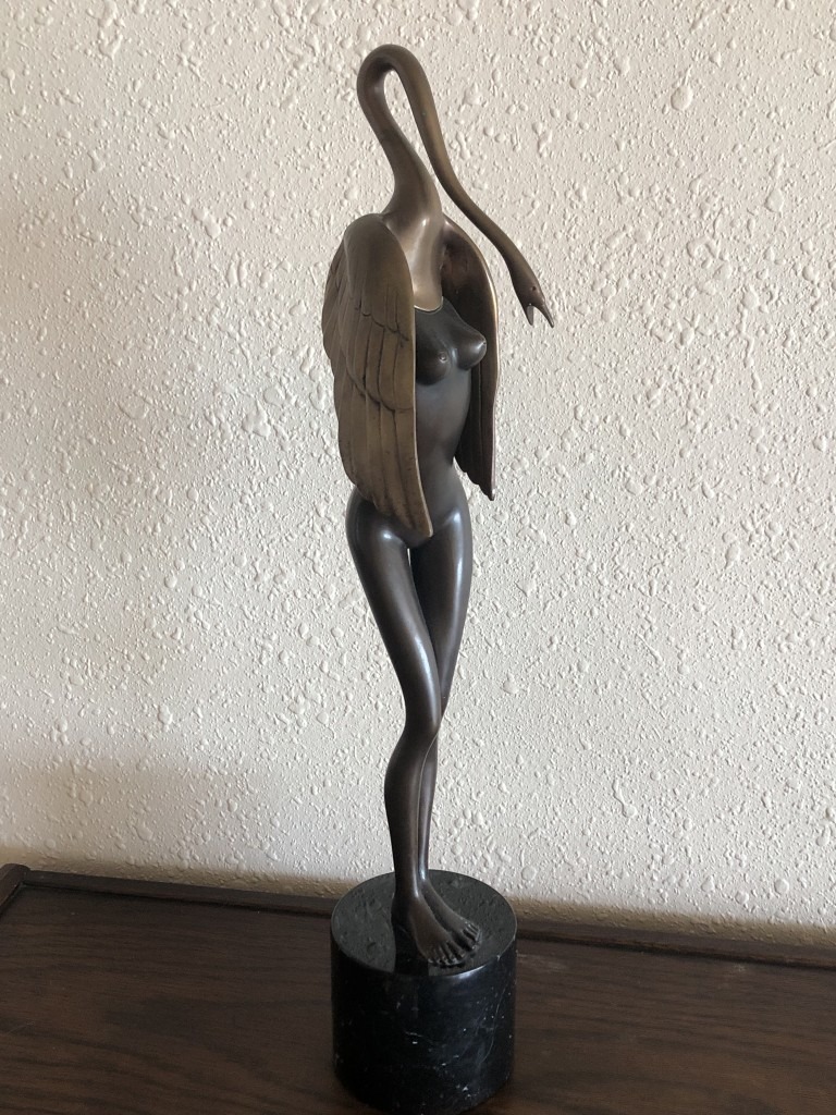 In the early 1990s my partner asked if there was something I had always wanted but couldn’t have. I named Leda and the Swan. The sculpture is from a folk tale about a woman who fell in love with a swan. She tracked it down and gave it to me for my birthday.