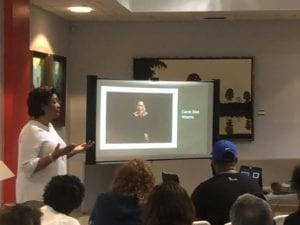 Colored People: Visions by Carrie Mae Weems and Amy Sherald was Davis’ inaugural presentation of what Woodson director Terri Lipsey-Scott announced would be a monthly event. With a pre-talk period that allowed guests to gather their coffee and pastries, the room was filled by the time Davis began — and as more people continued to file in, seats were added.