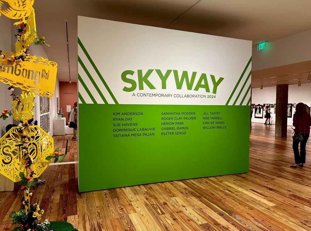 Skyway is an anthology of short stories reaching across many boundaries. There’re several generations of artists, representing many racial, cultural and gender identities – practicing in a variety of genres, styles, techniques, materials usage, modes of presentation, and scaled from tiny one inch-sized sculptural objects to room-size installations.