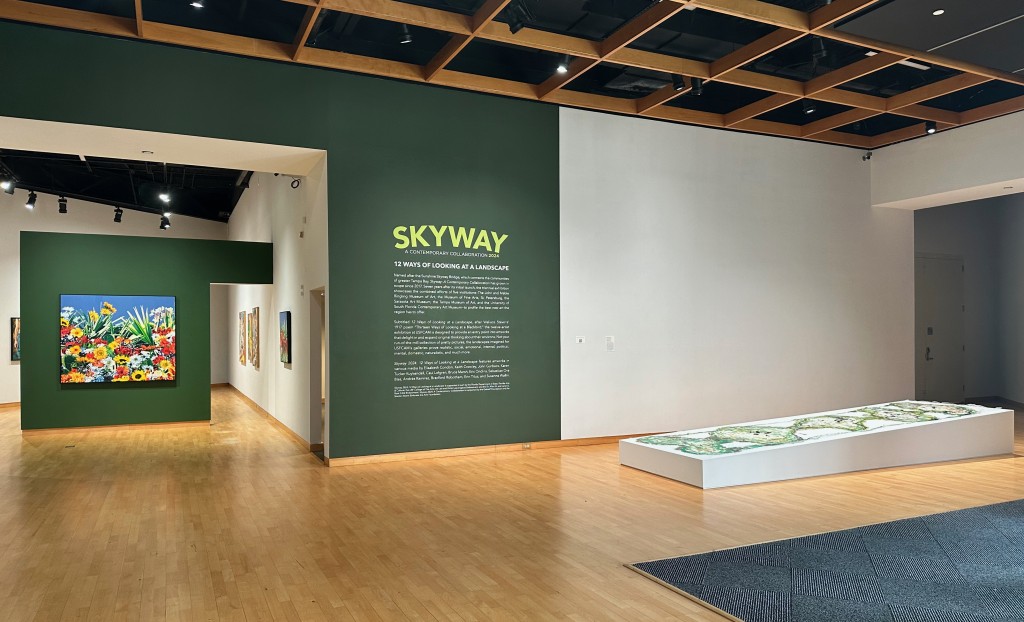 At the other end of the spectrum is complete transformation of space. Focusing on the landscape genre, the University of South Florida Contemporary Art Museum’s (CAM) galleries became a whole landscape to navigate. They have even added a subtitle to Skyway – 12 Ways of Looking at a Landscape.