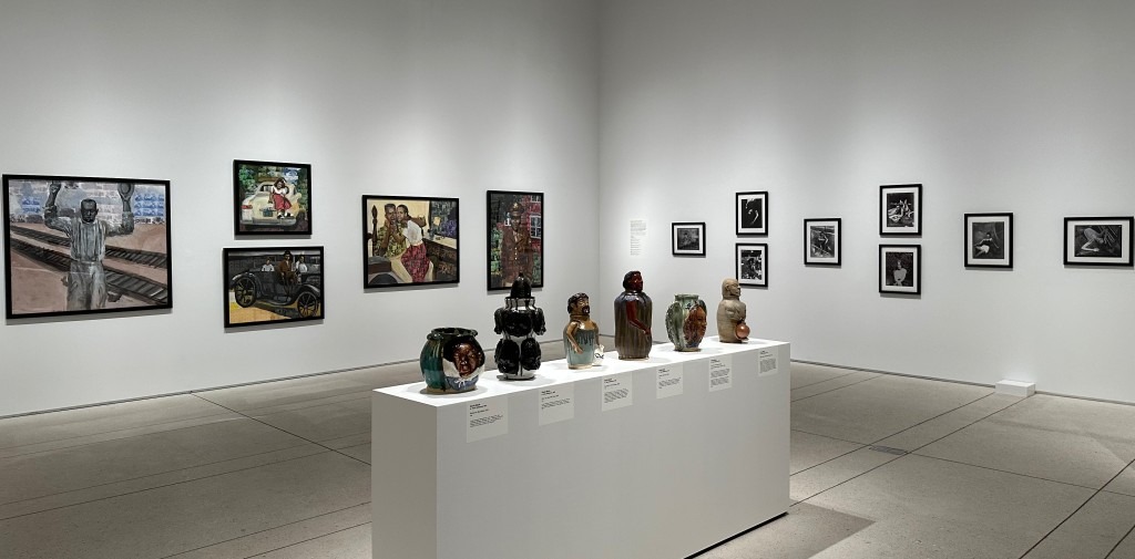 Like a mirror reflecting back to the vessels are the equally strong paintings by Dallas Jackson of contemporary Black life advancing in spite the legacy of segregation and institutional oppression.