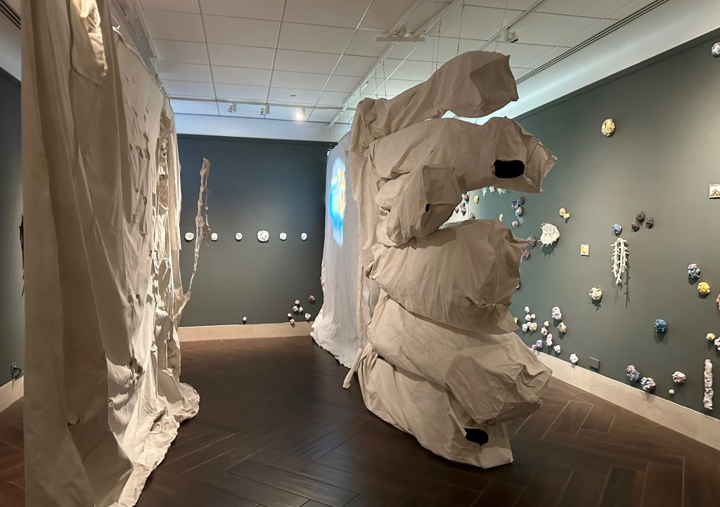 At the Ringling, the giant crocheted forms by Akiko Kotani tackle long durations of time with subtly changing surface textures.