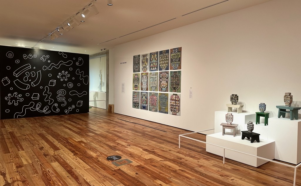 Each of Mack’s vessels portrays African Americans important to history, like Harriet Tubman or Black artists who are underrepresented or unrecognized. One is of David Drake (the vessel on the far right). I recognized this name from the exhibition Hear Me Now, The Black Potters of Old Edgefield, South Carolina at the University of Michigan Museum of Art last November. Drake was one of the enslaved potters at Old Edgefield.