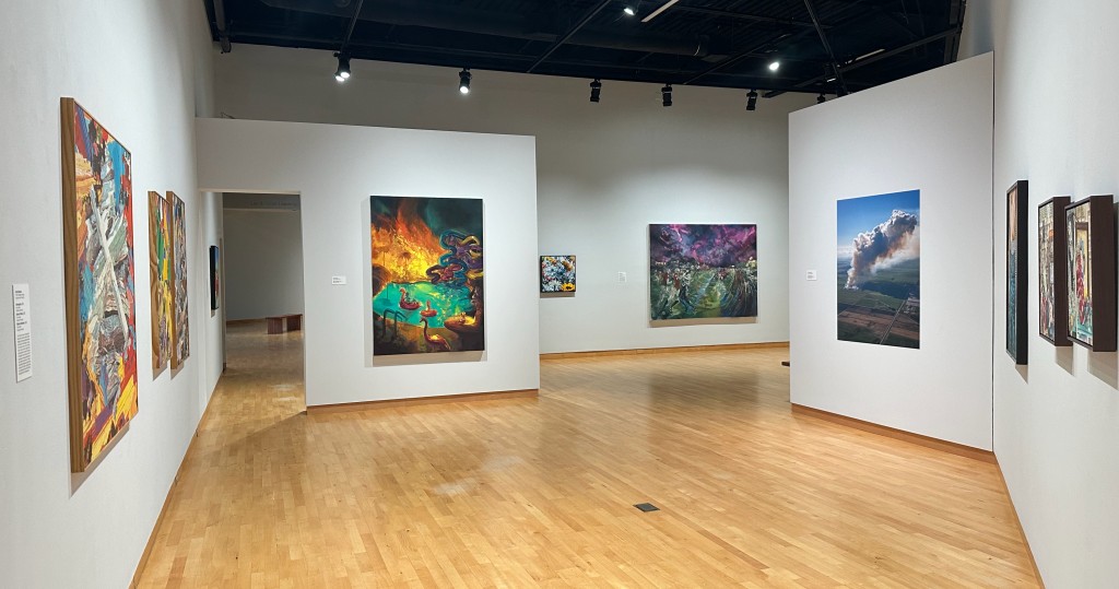 At TMA is David Sibbitt’s cultural reference-filled landscapes with tornados and even a whirlpool.