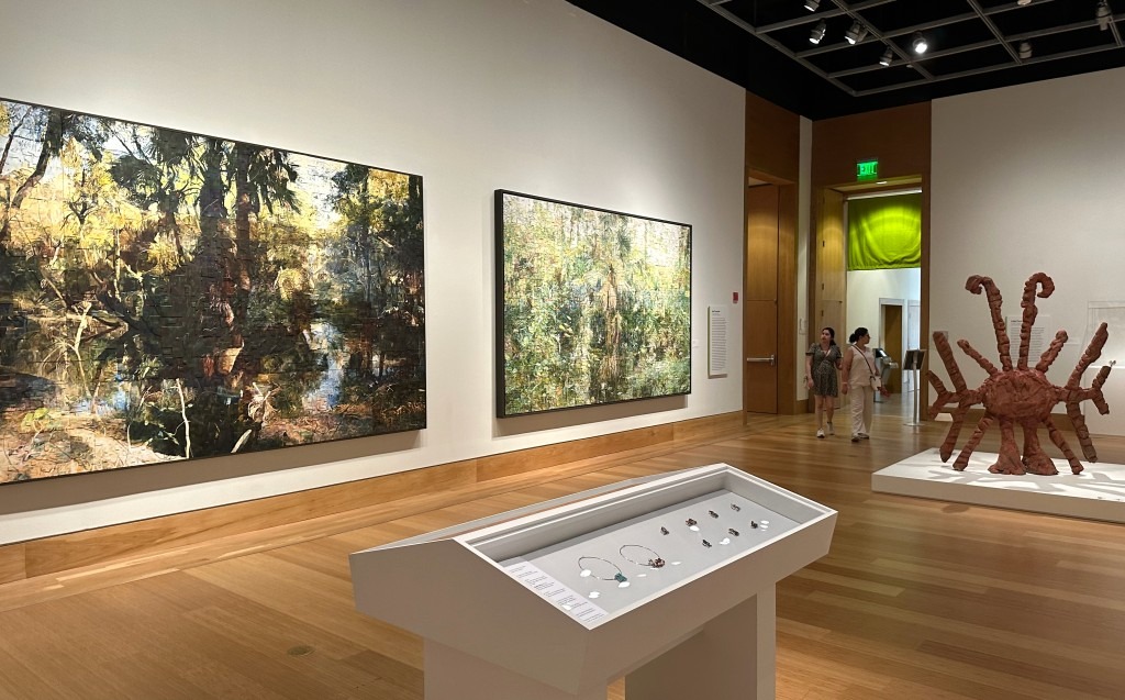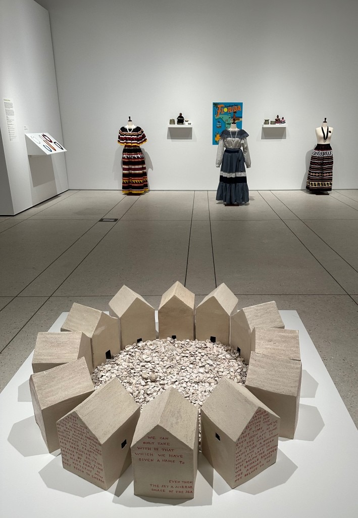 Another jewelry statement is at Tampa Museum of Art (TMA) with Corinne Zepeda’s beaded necklaces, displayed next to traditional outfits and objects expressing her Seminole heritage.