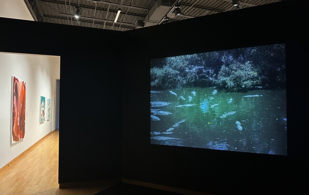 Keep on walking and there’s Susanna Wallin’s Will’s Hill, a video taken from a birds eye view of a section of the Hillsborough River projected onto the floor in the passageway between CAM’s East and West Galleries, creating the illusion of walking on water Jesus-like. It’s a vertigo inducing walk as the water flows underfoot.