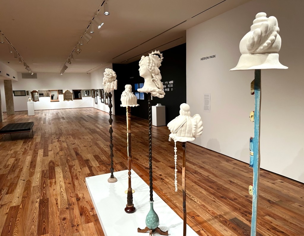 Herion Park with her series of soft wool sculptures like tribal headdresses.