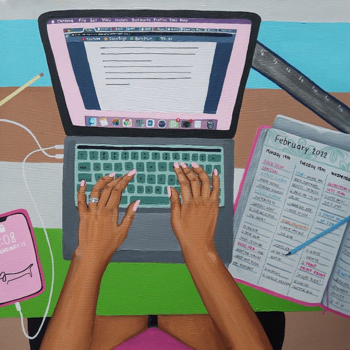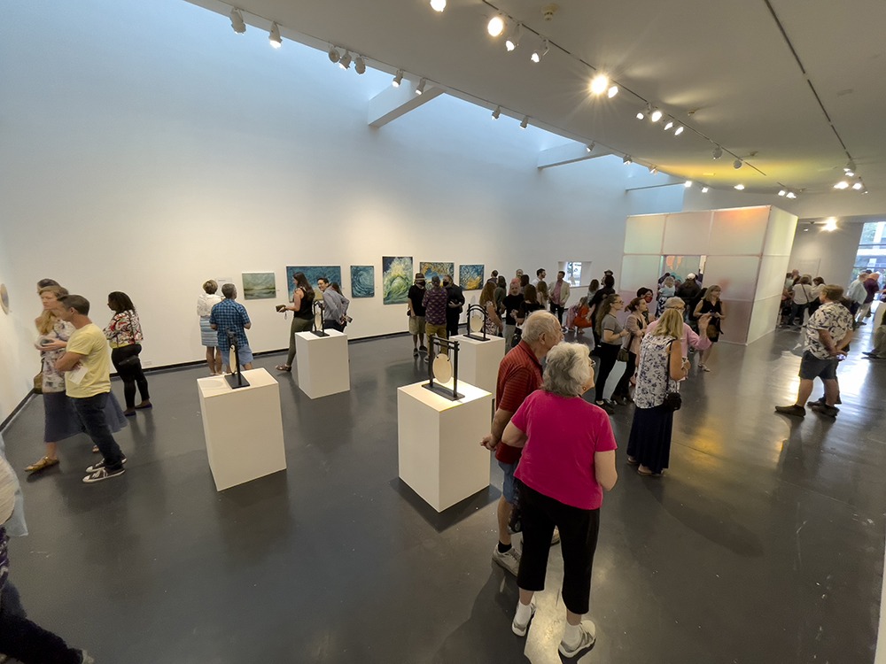 She was only the slightest bit out place – her long flowing dress and casual demeanor allowed the young girl to blend in at the 2021-22 Emerging Artists Exhibition on Opening Night. Still, I couldn’t help but wonder, why was she there at all? A budding artist perhaps? Or the child of one herself? I blinked and quickly lost her in the crowd. The turnout for this event was impressive.