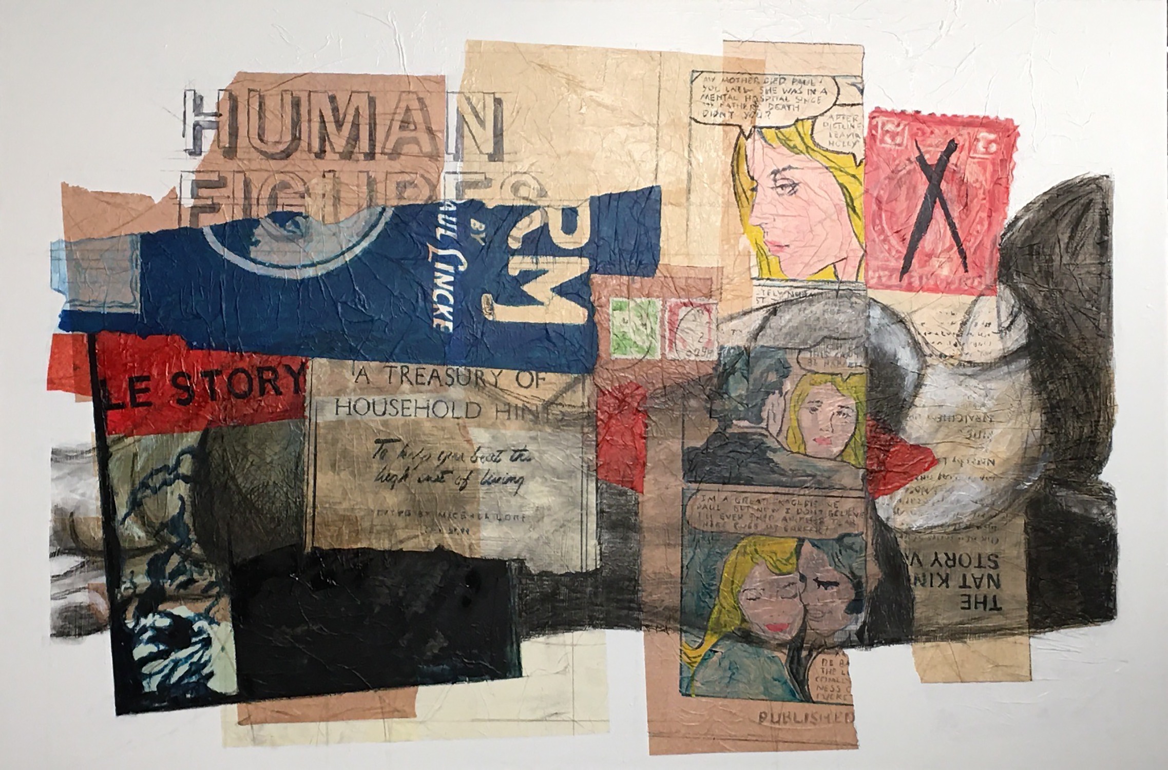 As I moved through, I saw Ashley Rivers’s raw, yet seamless images of metals, paints and mixed media as an homage to women since the beginning of time. I felt like I could see my ancestral mothers around the growing fire and next to them, what looked like chain links and the female form – to me, all the woman throughout history who found themselves locked on the wrong side of the fence for speaking their mind.