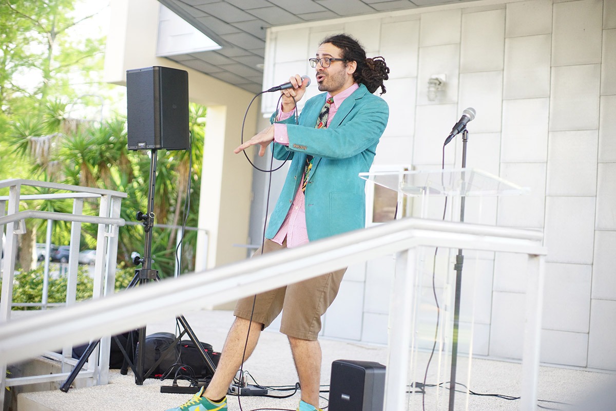 Making my way back to the cucumber water I heard clapping and music that drew me outside and was lucky enough to catch most of Mr. Jon Ditty’s performance. A songwriter and rapper, Jon Ditty uses his rhythm as a tool to deliver his message through creative and powerful lyrics to the audience.