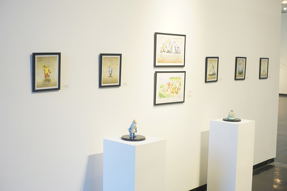 In fact, I was met by illustrations of many of the named characters from this book series as I walked in – they were fun and funky, very much my style, some sort of cross between Winnie the Pooh and Where The Wild Things Are. I wanted to know more, but the little information cards had all been taken. I made a mental note to come back and refill those – and let myself wash through the open yet intimate gallery and soak in all these artists had to offer.