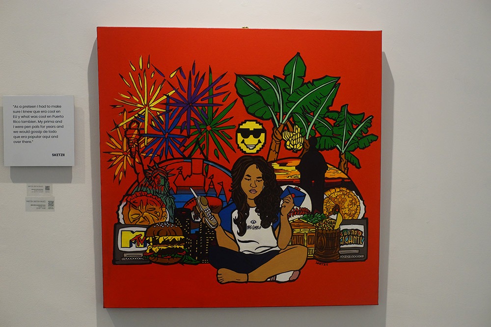 After plenty of time inside Kaufman’s Room of Iridescence, I was met with incredible swaths of bold and intense colors that conveyed artist Ketsy Ruiz‘s strong bond to her heritage and culture with a warmth and love that made you wish you were a long-lost cousin. A cousin with cucumber water. . .