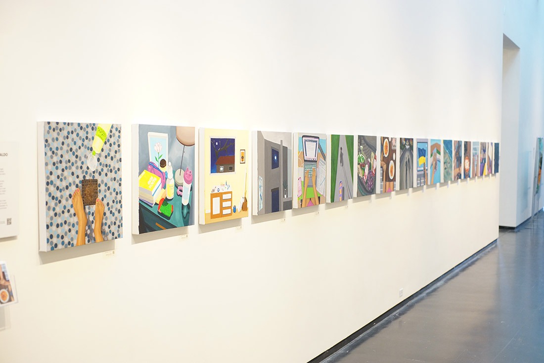 Incredibly surprised after not seeing this friend for over two years, we made our way across the gallery to check out Margherita Tibaldo’s daily life through her art. In a very interesting take, the artist uses seemingly arbitrary images from her ‘everyday’ and transforms them into works of art. Her passion comes right through the canvas along with a unique honesty.