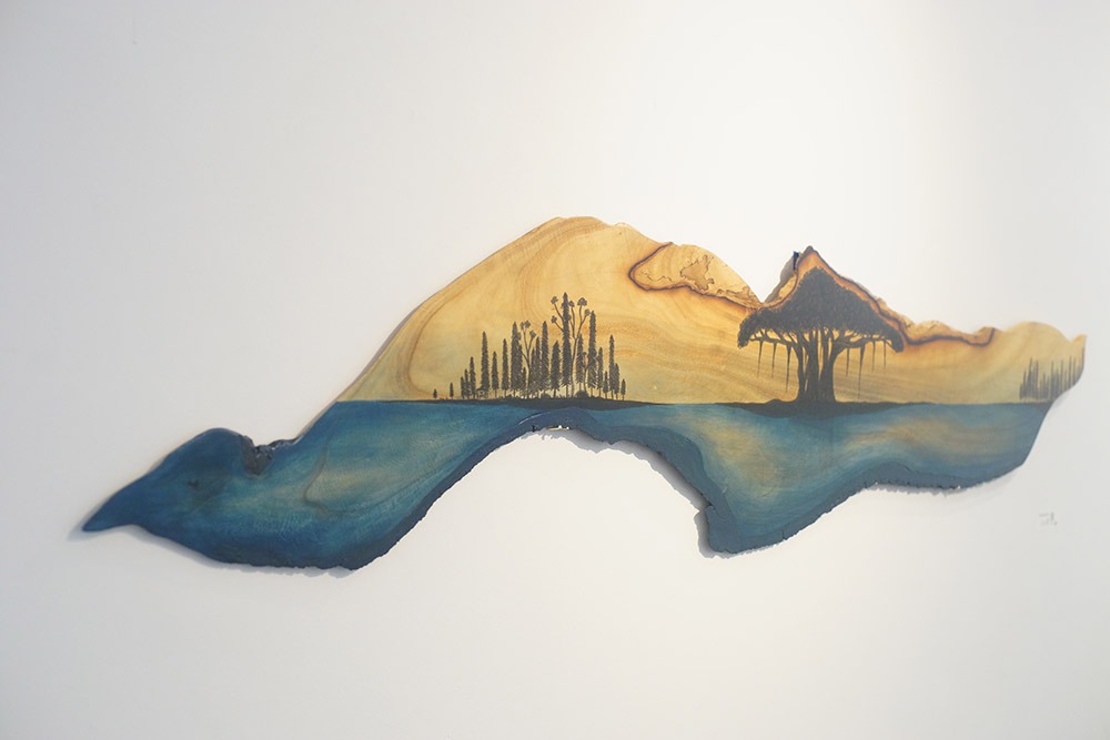As soon as I worked my way through the aesthetes bottlenecked near the entrance to Creative Pinellas’s astounding space, my attention was immediately drawn to the incredible pieces put out by this year’s Emerging Artist Award Grantees. A vast array of canvases to gaze lovingly into, beautiful wooden pieces, an incredible giant luminary – big enough for a dozen people to stand in – body pieces and even the illustrations to accompany a series of unique children’s books.