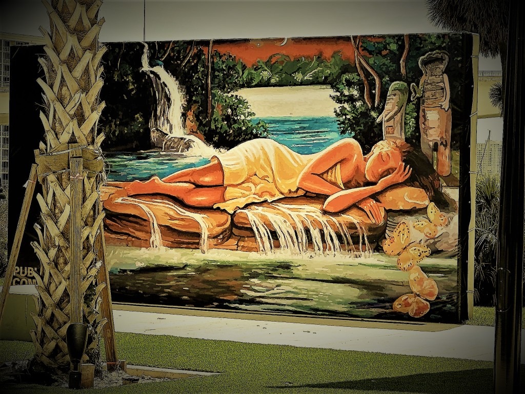 High on the bluff along Coachman Park’s walkways by the Clearwater Main Library entrance, the City of Clearwater has mounted mural-size images depicting artworks derived from two concurrent Cuba-related exhibitions.