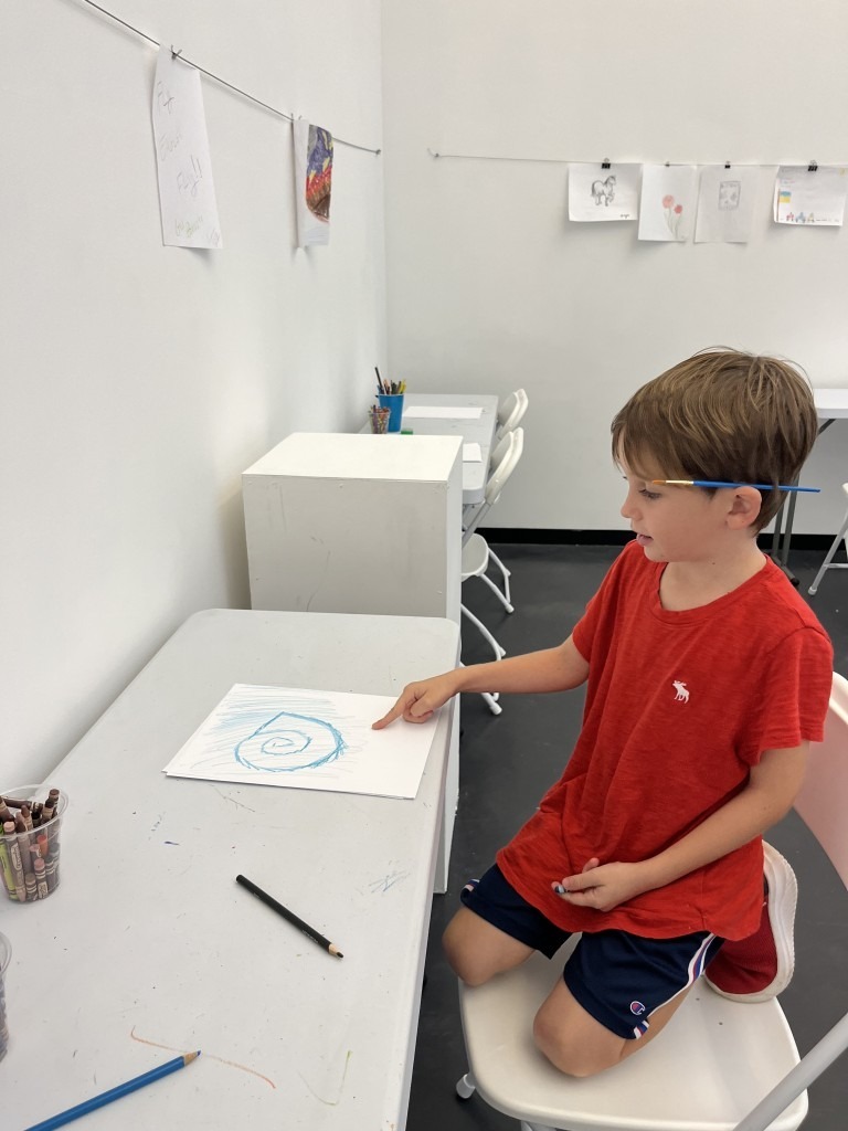 What I really love about the Gallery at Creative Pinellas is the Drawing room, a space for attendees to sit and reflect about some of the themes in the exhibition. In this instance the prompted themes were line, color and nature. We spent an ample amount of time coloring before proudly adding our drawings to the display wall.