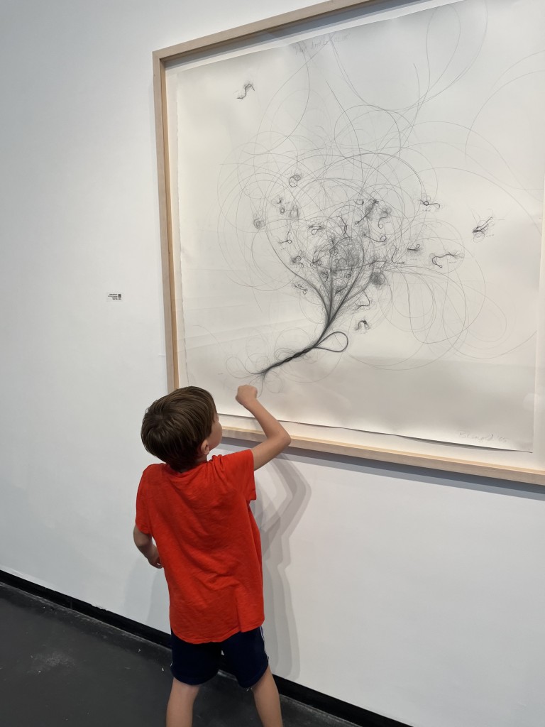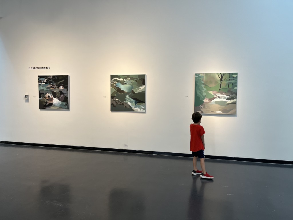 We viewed the peaceful and calm nature work of Elizabeth Barenis before William and Madeline stood hand in hand as they examined Three Carbon Catchers by Carol Mickett and Robert Stackhouse.