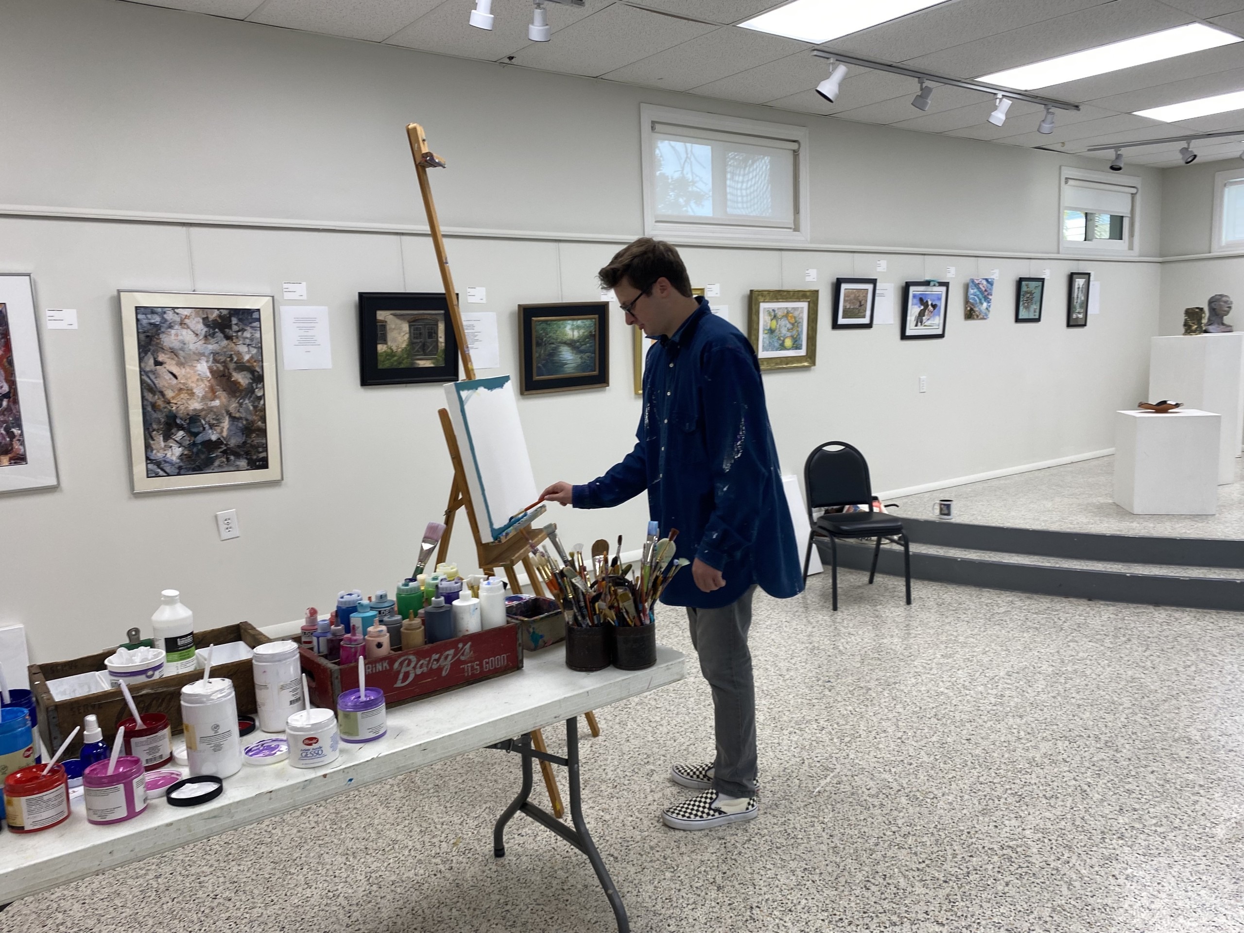 Dane and his mother Krista set out to teach and curate an art class titled “Fearless Abstract” at Indian Rocks’ Beach Art Center. The three-hour class took place on April 27 starting at 6 p.m. Twenty people piled into the art center to attempt a class on painting without the feeling so common to artists – fear.