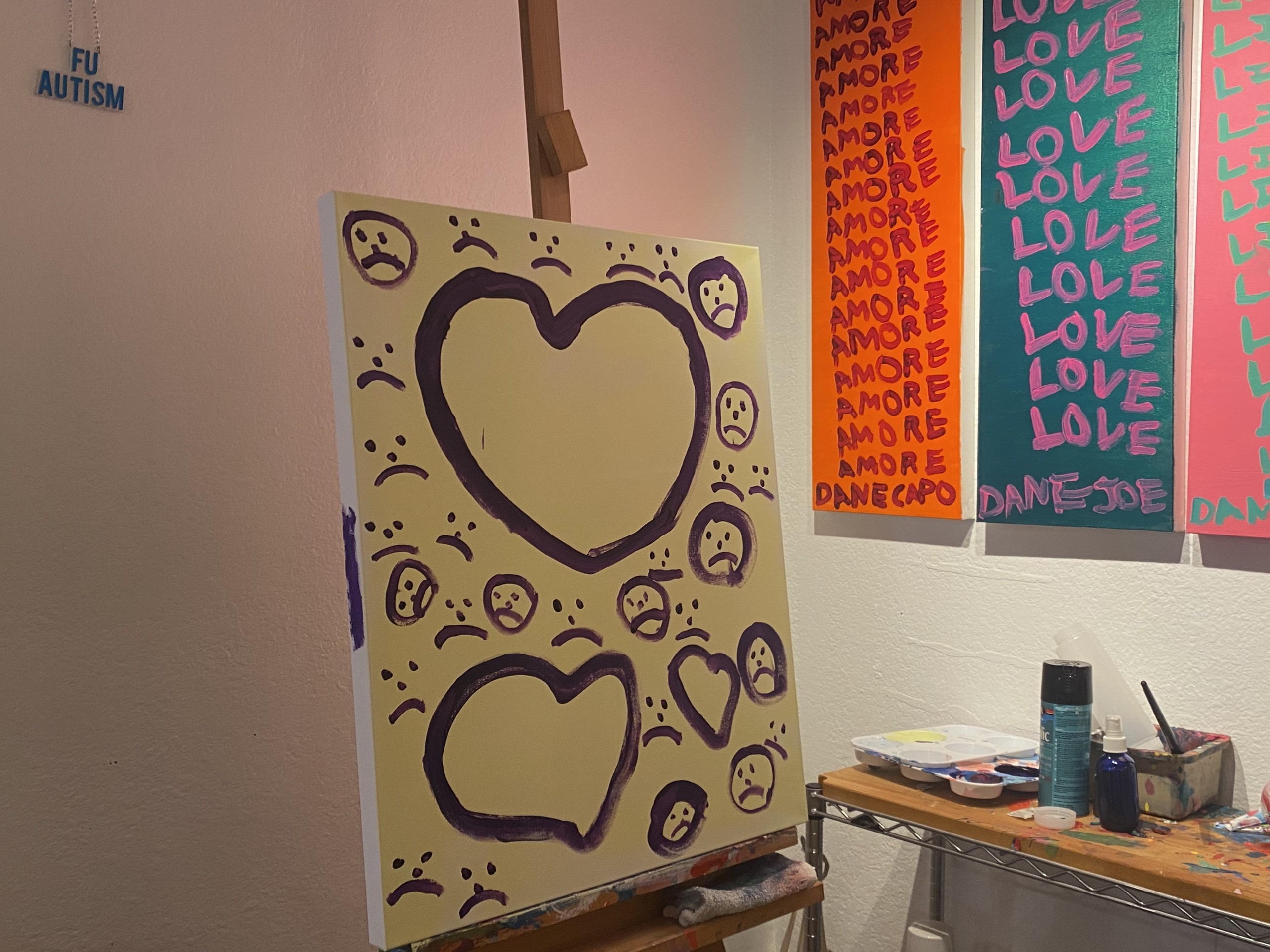 “We came up with the idea out of Autism Awareness Month,” Krista says. “Everybody asks about how he chooses his colors and how he comes up with these weird mixtures and things. I blame it on the Autism because he doesn’t have any fear about choosing a color. He just chooses a color. It’s not right. It’s not wrong. And then when he’s painting he just thinks everything’s good. Which also leads to that whole no fear thing.”