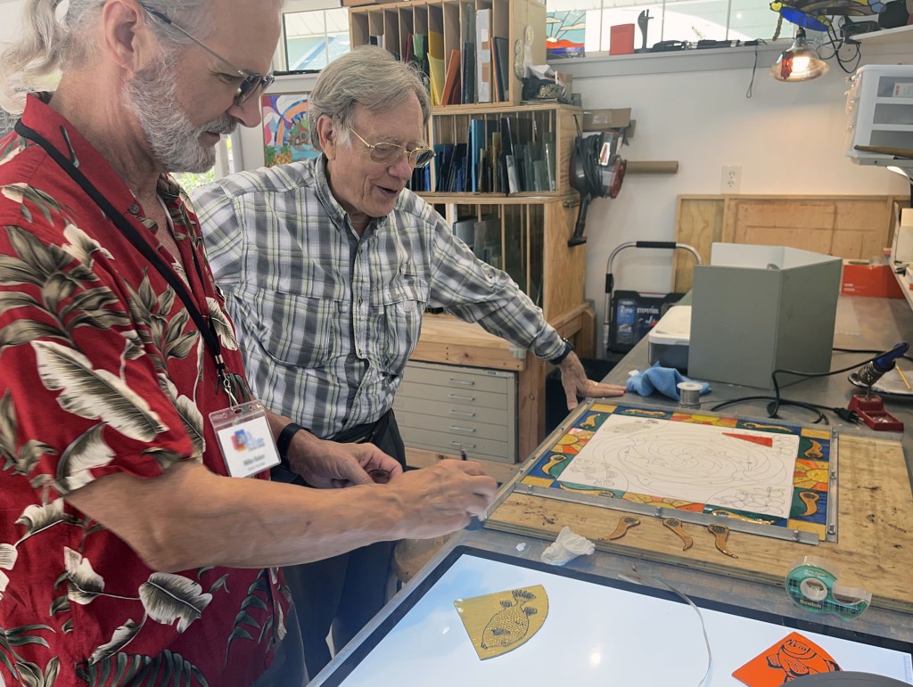 FCA’s newest exhibit was announced in early July and opened in mid-August. Somehow, I missed the press release, went out of town and, sorry to say, missed out on the opening and several scheduled artists’ demonstrations. I hope that you’ll take some time over the next month to visit and talk to FCA artists, watch their work process in their “temporary workbench/studio” set up in the Gallery, and peruse completed work on display for sale. It’s a twist on the typical outdoor craft shows where artists demonstrate aspects of their craft practice onsite.