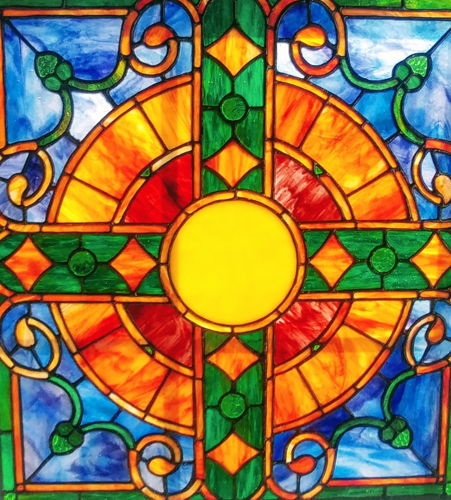 His artform is spiritual. “Light shining through colored pieces of glass is like God’s light shining through us,” he says.